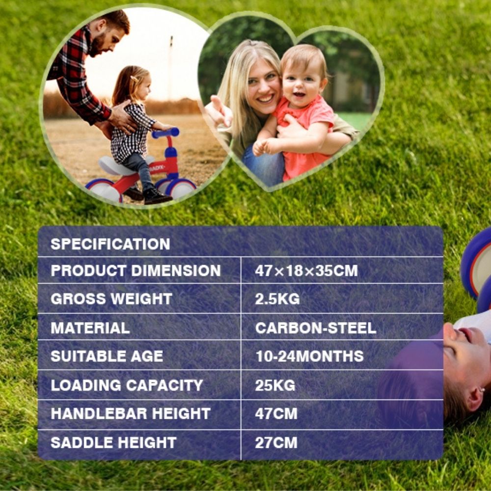The baby bikes are made of carbon steel frame structure, strong and stable. Widened tires make it easier to master the balance while giving the rider feel more in control. The wheels are made of EVA material. Wear-resistant, non-slip, no vibration, no noise during use, these high-quality children’s ride-on toys for 1-year-old will not damage your floor.
