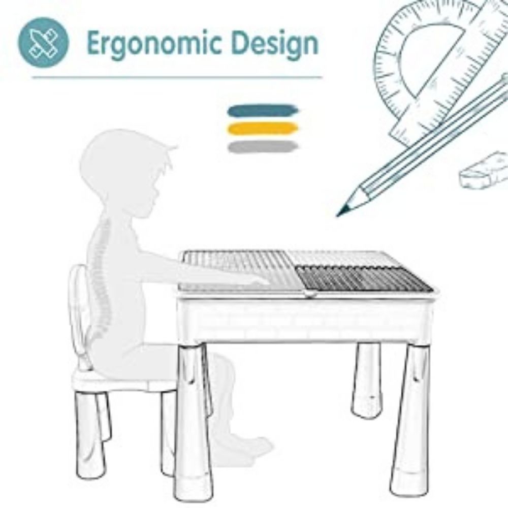 Kids Activity Height Adjustable Table and 2 Chair Set ,include 100Pcs Large Size Blocks Compatible with big blocks. Non-toxic and durable plastic Toy Storage for kids.